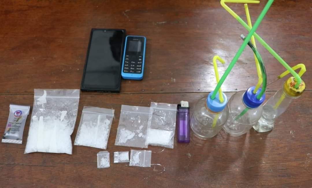 ចំណែកវត្ថុតាងដែលសមត្ថកិច្ចដកហូតបាន ម្សៅក្រាមពណ៍ស ថ្លា សង្ស័យជាសារធាតុញៀនខុសច្បាប់ចំនួន ០៧ កញ្ចប់ មានទម្ងន់ ៤១.២ ក្រាម ទូរស័ព្ទដៃចំនួន ០២ គ្រឿង និងឧបករណ៍សម្រាប់ប្រើប្រាស់ សារធាតុញៀនមួយចំនួន ។