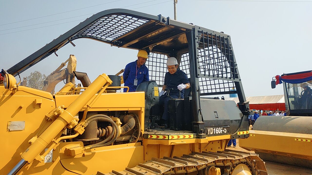ពីលោកជំទាវ ZhongJie ទីប្រឹក្សាសេដ្ឋកិច្ចនិងពាណិជ្ជកម្ម នៃស្ថានទូតចិនប្រចាំនៅកម្ពុជាអមដំណើរដោយឯកឧត្តមងួន រតនៈ អភិបាលនៃគណ:អភិបាលខេត្តកំពង់ធំក្នុងការអញ្ជើញចូលរួមកម្មពិធីបើកការដ្ឋានជាផ្លូវការនេះឯកឧត្តមរដ្ឋមន្រ្តី បានបញ្ជាគ្រឿងចក្រជានិមិត្តរូបនៃគម្រោងអភិវឌ្ឍន៍អាងទឹក