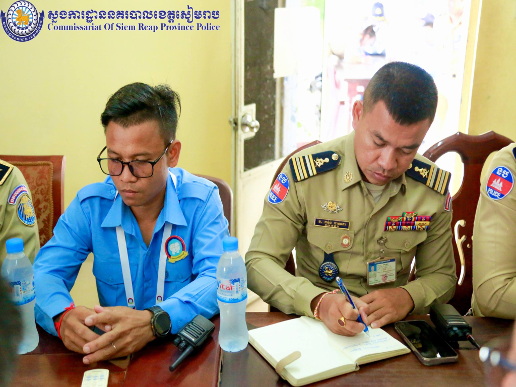 សៀមរាប ៖ នៅព្រឹកថ្ងៃអង្គារ ១៤កើត ខែកត្តិក ឆ្នាំម្សាញ់ សប្តស័ក ព.ស. ២៥៦៩ ត្រូវនឹងថ្ងៃទី៤ ខែវិច្ឆិកា ឆ្នាំ២០២៥ វេលាម៉ោង០៩:០០នាទី នៅស្នាក់ការនគរបាលចរាចរណ៍ផ្លូវគោក ដោយអនុវត្តតាមការចង្អុលដឹកនាំដ៏ខ្ពង់ខ្ពស់ពី ឯកឧត្តម នាយឧត្តមសេនីយ៍ ស ថេត អគ្គស្នងការនគរបាលជាតិ លោកឧត្ដមសេនីយ៍ទោ ហួត សុធី ស្នងការ នៃស្នងការដ្ឋាននគរបាលខេត្ដសៀមរាប អញ្ជើញដឹកនាំកិច្ចប្រជុំត្រួតពិនិត្យផែនការការពារ ធានាសន្តិសុខ សុវត្ថិភាព និងសណ្តាប់ធ្នាប់កម្មវិធីផ្សារទឹក និងជិះទូកកំសាន្ត ក្នុងឱកាសព្រះរាជពិធីបុណ្យអុំទូក បណ្តែតប្រទីប និងសំពះព្រះខែ អកអំបុក ៕