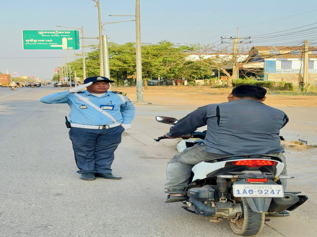 លោកឧត្តមសេនីយ៍ទោ ហួត សុធី ស្នងការនគរបាលខេត្ត បានចាត់កម្លាំងនគរបាលចរាចរណ៍ ចុះផ្សព្វផ្សាយណែនាំច្បាប់ស្តីពីចរាចរណ៍ផ្លូវគោក និងចែកមួកការពារសុវត្ថិភាព ជូនបងប្អូនប្រជាពលរដ្ឋ នៅតាមគោលដៅសំខាន់ៗ ក្នុងក្រុងសៀមរាបសៀមរាប ៖ នៅព្រឹកថ្ងៃពុធ ៦រោច ខែចេត្រ ឆ្នាំម្សាញ់ សប្តស័ក ពុទ្ធសករាជ ២៥៦៩ ត្រូវនឹងថ្ងៃទី៨ ខែមេសា ឆ្នាំ២០២៦ ដោយអនុវត្តតាមអនុសាសន៍ណែនាំដ៏ខ្ពង់ខ្ពស់របស់ ឯកឧត្ដម នាយឧត្ដមសេនីយ៍ ស ថេត អគ្គស្នងការនគរបាលជាតិ លោកឧត្តមសេនីយ៍ទោ ហួត សុធី ស្នងការ នៃស្នងការដ្ឋាននគរបាលខេត្តសៀមរាប បានចាត់ កម្លាំងការិយាល័យនគរបាលចរាចរណ៍ផ្លូវគោក ចុះផ្សព្វផ្សាយណែនាំច្បាប់ស្តីពីចរាចរណ៍ផ្លូវគោក ដល់អ្នកប្រើប្រាស់ផ្លូវសាធារណៈទាំងឡាយ ឲ្យបានយល់ដឹងអំពីផលប៉ះពាល់នៃគ្រោះថ្នាក់ចរាចរណ៍ និងត្រូវយកចិត្តទុកដាក់គោរពច្បាប់ស្តីពីចរាចរណ៍ផ្លូវគោក ឲ្យបានខ្ជាប់ខ្ជួនដើម្បីសំដៅរួមគ្នាកាត់បន្ថយគ្រោះថ្នាក់ចរាចរណ៍។ ក្នុងនោះផងដែរមន្រ្តីនគរបាលចរាចរណ៍ ក៏បានចែកជូននូវសៀវភៅច្បាប់ស្តីពីចរាចរណ៍ផ្លូវគោក ខិត្តប័ណ្ណជំនួយស្មារតី មួកការពារសុវត្ថិភាពចំនួន ៥០០មួក រួមទាំងបានណែនាំអំពីវិធានការនានា ដើម្បីបញ្ចៀសពីហានិភ័យដោយគ្រោះថ្នាក់ចរាចរណ៍ផងដែរ៕