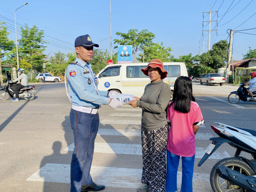 សៀមរាប ៖ នៅព្រឹកថ្ងៃពុធ ៦រោច ខែចេត្រ ឆ្នាំម្សាញ់ សប្តស័ក ពុទ្ធសករាជ ២៥៦៩ ត្រូវនឹងថ្ងៃទី៨ ខែមេសា ឆ្នាំ២០២៦ ដោយអនុវត្តតាមអនុសាសន៍ណែនាំដ៏ខ្ពង់ខ្ពស់របស់ ឯកឧត្ដម នាយឧត្ដមសេនីយ៍ ស ថេត អគ្គស្នងការនគរបាលជាតិ លោកឧត្តមសេនីយ៍ទោ ហួត សុធី ស្នងការ នៃស្នងការដ្ឋាននគរបាលខេត្តសៀមរាប បានចាត់ កម្លាំងការិយាល័យនគរបាលចរាចរណ៍ផ្លូវគោក ចុះផ្សព្វផ្សាយណែនាំច្បាប់ស្តីពីចរាចរណ៍ផ្លូវគោក ដល់អ្នកប្រើប្រាស់ផ្លូវសាធារណៈទាំងឡាយ ឲ្យបានយល់ដឹងអំពីផលប៉ះពាល់នៃគ្រោះថ្នាក់ចរាចរណ៍ និងត្រូវយកចិត្តទុកដាក់គោរពច្បាប់ស្តីពីចរាចរណ៍ផ្លូវគោក ឲ្យបានខ្ជាប់ខ្ជួនដើម្បីសំដៅរួមគ្នាកាត់បន្ថយគ្រោះថ្នាក់ចរាចរណ៍។ ក្នុងនោះផងដែរមន្រ្តីនគរបាលចរាចរណ៍ ក៏បានចែកជូននូវសៀវភៅច្បាប់ស្តីពីចរាចរណ៍ផ្លូវគោក ខិត្តប័ណ្ណជំនួយស្មារតី មួកការពារសុវត្ថិភាពចំនួន ៥០០មួក រួមទាំងបានណែនាំអំពីវិធានការនានា ដើម្បីបញ្ចៀសពីហានិភ័យដោយគ្រោះថ្នាក់ចរាចរណ៍ផងដែរ៕