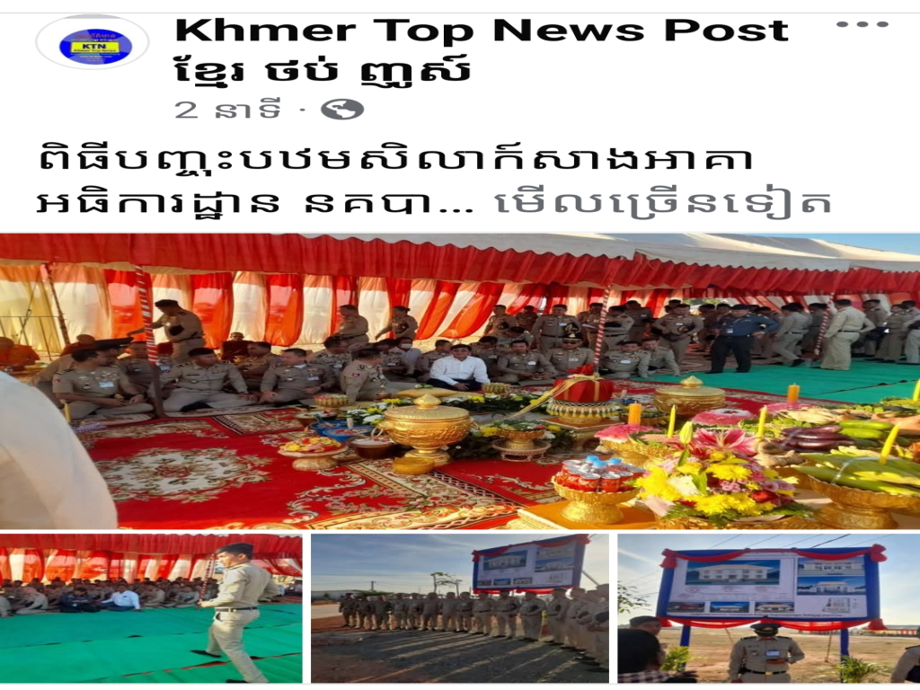 ខេត្តសៀមរាប៖ អធិការដ្ឋាននគបាលក្រុងរុនតាឯកនាថ្ងៃសុក្រ៤រោជ ខែបុស្ស ឆ្នាំរោង ឆស័ក ពុទ្ធសករាជ២៥៦៨ ត្រូវនិងថ្ងៃទី១៧ ខែមករា ឆ្នាំ២០២៥ បានរៀបចំពិធីក្រុងពាលីបញ្ចុះបឋមសិលាក៍សាងអាគា អធិការដ្ឋាន នគបាលក្រុងរុនតាឯកតេជោសែន ដែលមានការអញ្ជើញចូលរួមជាអធិបតីយ្យភាណ លោកឧត្តមសេនីយ៍ទោហួត សុធី ស្នងការនគបាលខេត្តសៀមរាប លោកឧត្តមសេនីយ៍ត្រី ឈួយ បញ្ញា ស្នងការរងនគបាលខេត្តសៀមរាប លោកអ៊ុង សុភ័ណអភិបាលនៃគណ:អភិបាលក្រុងរុនតាឯកលោកស្រេង សូឡី មេបញ្ជាការរងកងរាជអាវុធហត្ថក្រុងរុនតាឯក លោក អធិការនគបាលក្រុងរុនតាឯក ក្នុងនោះផងដែរក៍មានការអញ្ជើញចូលរួមពីសំណាក់ លោកស្រីចៅសង្កាត់រុនតាឯក លោកមេប៉ុស្តិ៍នគបាលរដ្ឋបាលរុនតាឯក និងមន្រ្តីអ្នកមុខអ្នកការក្នុងមូលដ្ឋានជាច្រើននាក់ទៀត៕