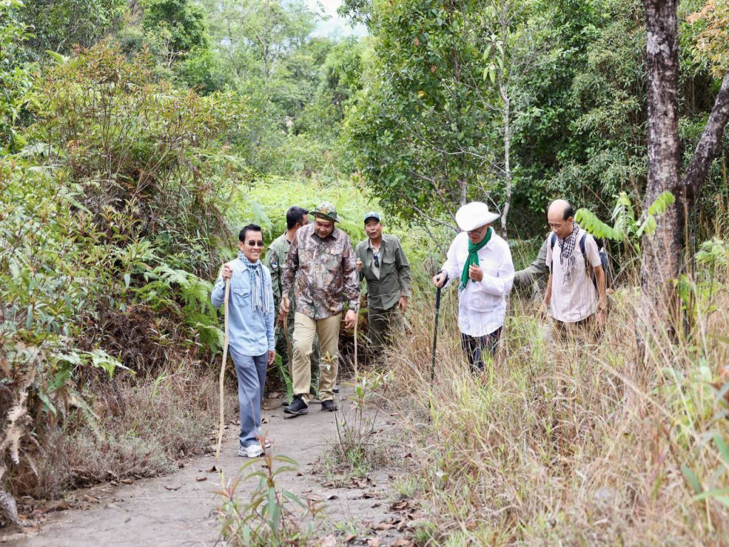 ឯកឧត្តមរដ្ឋមន្រ្តីបានធ្វើដំណើរ ដោយថ្មើរជើងចំងាយឡើងភ្នំ ជាង ៣គីឡូ និងបានឆ្លងកាត់តំបន់ទេសភាពធម្មជាតិ យ៉ាងល្អប្រណីត ដូចជាវាលស្រល់បៃតងស្រស់ ខ្យល់អាកាសបរិសុទ្ធ ឆ្លងកាត់ភ្នំខ្នងក្រពើ បន្តទៅភ្នំខ្នងស្រូវ និងបន្តមកតំបន់ភ្នំខ្នងផ្សារ ដែលរដូវនេះ បានរំលេចចេញឱ្យឃើញទេសភាពដូចក្រាលព្រំពណ៌មាសលើភ្នំ គួរជាទីមនោរម្យ។