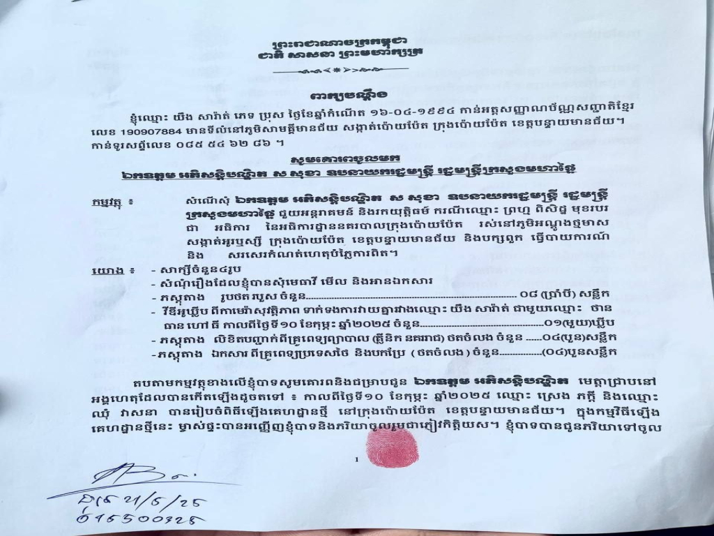 លោក យឹង សារ៉ាត់ សម្រេចប្តឹងអធិការនៃអធិការដ្ឋាននគរបាលក្រុងប៉ោយប៉ែត និងបក្សពួកចូលមកឯកឧត្តម អភិសន្តិបណ្ឌិត ស សុខា ឧបនាយករដ្ឋមន្រ្តី រដ្ឋមន្រ្តីក្រសួងមហាផ្ទៃ ករណីមន្ត្រីធ្វើរបាយការណ៍ និងសរសេរកំណត់ហេតុបំភ្លៃការពិតពាក់ព័ន្ធអំពើហិង្សាដែលបានកើតឡើងកាលពីថ្ងៃទី១០ ខែកុម្ភៈ ឆ្នាំ២០២៥។