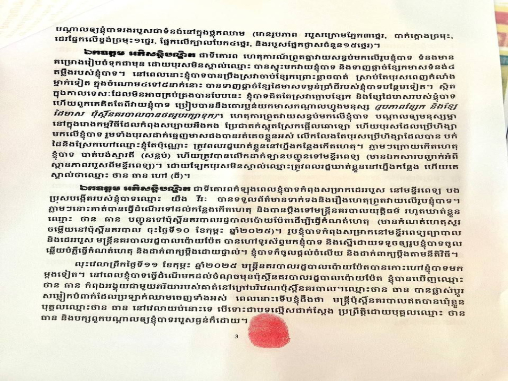តាមពាក្យបណ្តឹងដែលសារព័ត៌មានយើងខ្ញុំទើបទទួលបាននៅថ្ងៃទី២១ ខែ ឧសភា ឆ្នាំ២០២៥ បានរៀបរាប់យ៉ាងលំអិតអំពីភាពមិនប្រក្រតីនៃការកសាងសំណុំរឿង និងភាពមិនប្រក្រតីចំពោះការអះអាងរបស់មន្ត្រីនគរបាលលើកឡើងអំពីអ្នកលូកដៃធ្វើអន្តរាគមន៍។