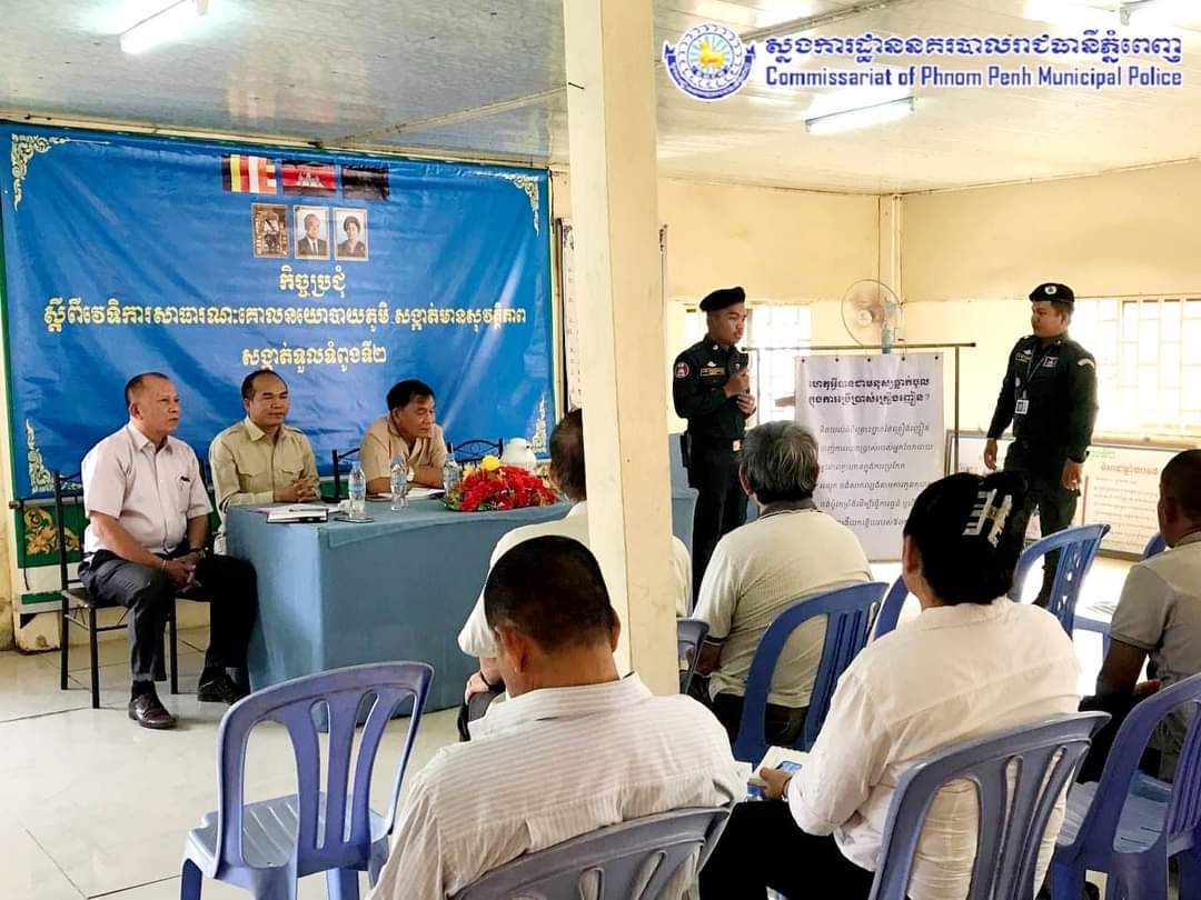 រាជធានីភ្នំពេញ៖ដោយអនុវត្តតាមទិសដៅការងាររបស់ឯកឧត្តម ឧត្តមសេនីយ៍ឯក ជួន ណារិន្ទ អគ្គស្នងការរង និងជាស្នងការនគរបាលរាជធានីភ្នំពេញ នៅថ្ងៃទី១៨ ខែកញ្ញា ឆ្នាំ២០២៤ កម្លាំងប៉ុស្តិ៍នគរបាលរដ្ឋបាលទួលទំពូងទី២ នៃអធិការដ្ឋាននគរបាលខណ្ឌចំការមន សហការជាមួយគណៈបញ្ជាការឯកភាពសង្កាត់ ចុះផ្សព្វផ្សាយពីគោលនយោបាយភូមិ-សង្កាត់ មានសុវត្ថិភាព (ផលប៉ះពាល់នៃការប្រើប្រាស់សារធាតុញៀន បញ្ហាក្មេងទំនើង) ដល់ប្រជាពលរដ្ឋ៕
