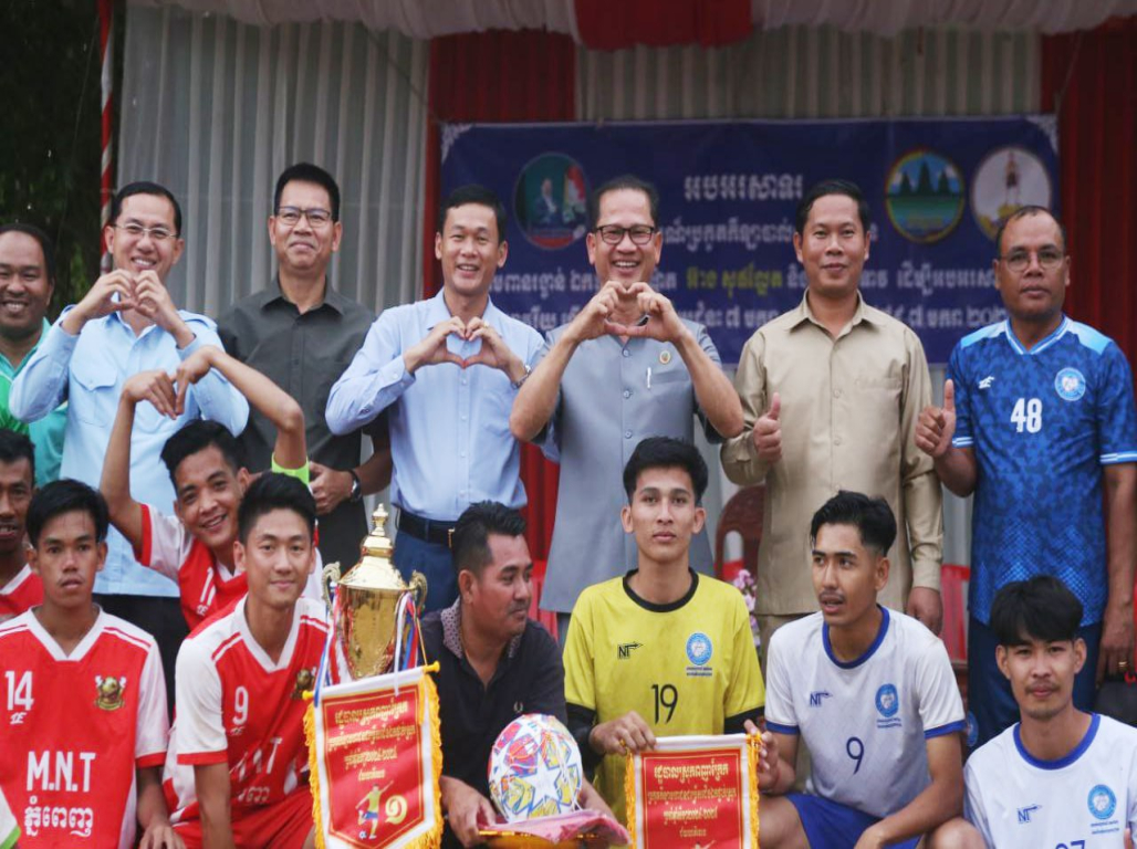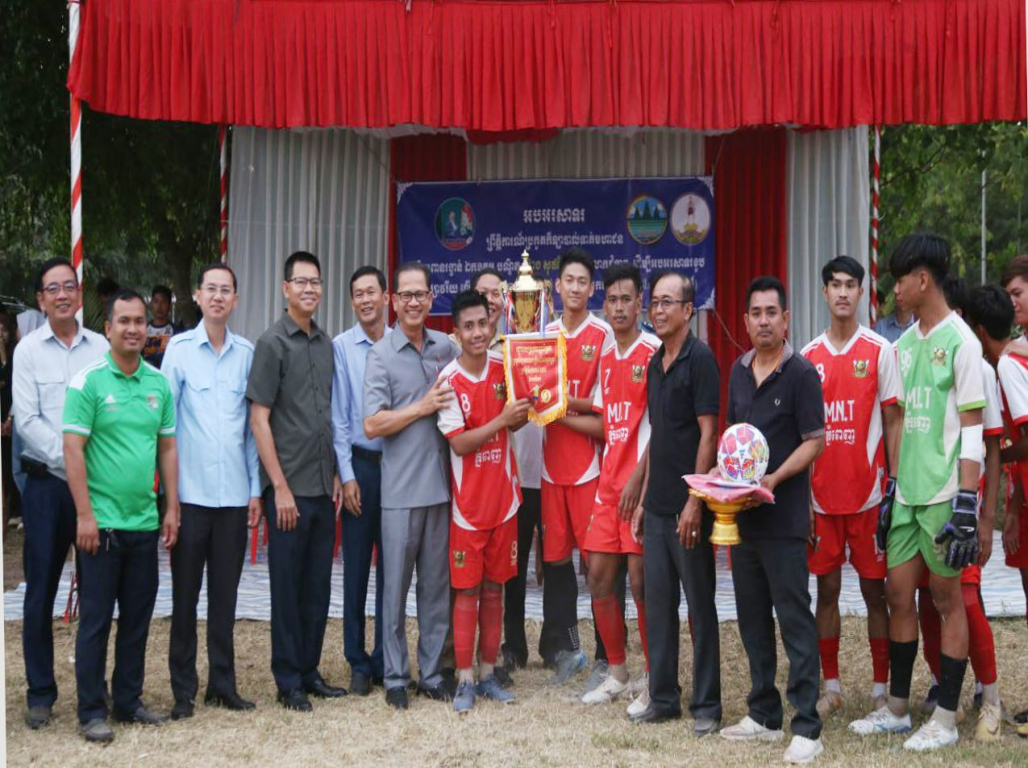 ត្បូងឃ្មុំ៖ ឯកឧត្តម ង៉ូវ បូរីណា រដ្ឋលេខាធិការក្រសួងបរិស្ថាន នៅថ្ងៃទី២២ ខែធ្នូ ឆ្នាំ២០២៤ តំណាងដ៏ខ្ពង់ ខ្ពស់ឯកឧត្តមបណ្ឌិត អ៊ាង សុផល្លែត រដ្ឋមន្ត្រី ក្រសួងបរិស្ថាន និងជាប្រធានក្រុមការងាររាជ រដ្ឋាភិបាលចុះមូលដ្ឋានខេត្តត្បូងឃ្មុំ បានអញ្ជើញ ជាអធិបតីក្នុងពិធីប្រកួកីឡាបាល់ទាត់មហាជន ស្រុកពញាក្រែក វគ្គផ្តាច់ព្រ័ត្រ ដណ្តើមពានរង្វាន់ ឯកឧត្តមបណ្ឌិត អ៊ាង សុផល្លែត រដ្ឋមន្ត្រីក្រសួង បរិស្ថាន និង លោកជំទាវ ក្រោមមូលបទ «កីឡា ដើម្បីសន្តិភាព និងបរិស្ថាននៅកម្ពុជា» អបអរ សាទរខួបអនុស្សាវរីយ៍លើកទី ៤៦ នៃទិវាជ័យ