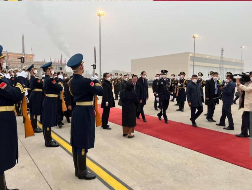 នៅព្រឹកថ្ងៃទី១១ខែកុម្ភៈឆ្នាំ២០២៣នេះម៉ោង០៨នឹង៤៥នាទីម៉ោងនៅទីក្រុងប៉េកាំងប្រទេសចិនត្រូវនឹងម៉ោង៧:៤៥នាទីម៉ោងនៅព្រះរាជាណាចក្រកម្ពុជា សម្ដេចអគ្គមហាសេនាបតីតេជោហ៊ុនសែន នាយករដ្ឋមន្ត្រីនៃព្រះរាជាណាចក្រកម្ពុជាបានអញ្ជើញដឹកនាំគណៈប្រតិភូជាន់ខ្ពស់នៃរាជរដ្ឋាភិបាលកម្ពុជាអញ្ជើញធ្វើដំណើរចាកចេញពីទីក្រុងប៉េកាំងប្រទេសចិនឆ្ពោះមកកាន់ព្រះរាជាណាចក្រកម្ពុជាវិញហើយបន្ទាប់ពីបានអញ្ជើញបំពេញទស្សនកិច្ចផ្លូវការរយៈពេល២ថ្ងៃប្រកបដោយភាពជោគជ័យផ្លែផ្កាយ៉ាងត្រចះត្រចង់នោះ។