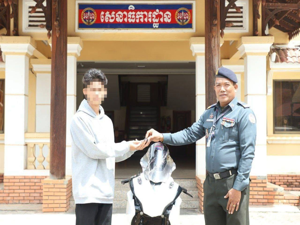 ខេត្តសៀមរាប៖ នៅវេលាម៉ោង ០៩ៈ៥៨នាទី ថ្ងៃទី១២ ខែតុលា ឆ្នាំ២០២៥ អាវុធហត្ថខេត្តសៀមរាប បានទទួលបណ្តឹងផ្ទាល់មាត់ពីប្រជាពលរដ្ឋតាមរយៈលេខទូរស័ព្ទបន្ទាន់ ១២៩៦ ដើម្បីសុំកិច្ចអន្តរាគមន៍លើករណីរំលោភលើទំនុកចិត្ត (ករណីបាត់ម៉ូតូ) ដោយជនសង្ស័យម្នាក់ បានចូលទៅក្នុងហាងមួយកន្លែង ស្ថិតនៅភូមិស្លក្រាម សង្កាត់ស្លក្រាម ក្រុងសៀមរាប ខេត្តសៀមរាប ក៏បាននិយាយលេងជាមួយម្ចាស់ម៉ូតូមួយសន្ទុះ ជនសង្ស័យក៏បានសុំខ្ចីម៉ូតូរបស់ជនរងគ្រោះ ម៉ាកCBR ហុងដា ០១គ្រឿង ពណ៌ស ឆ្នាំ២០១៦ ផ្លាកលេខបន្ទាយមានជ័យ 1N.2700 ថាទៅទិញបាយហូប ជនរងគ្រោះជាម្ចាស់ម៉ូតូក៏បានអោយសោរម៉ូតូទៅជនសង្ស័យ ក្រោយពីបានសោរម៉ូតូ ជនសង្ស័យក៏ជិះទៅបាត់ដោយមិនបានយកម៉ូតូមកឲ្យជនរងគ្រោះជាម្ចាស់ម៉ូតូវិញនោះទេ។ បន្ទាប់ពីទទួលបានបណ្ដឹងពីជនរងគ្រោះ កម្លាំងការិយាល័យជំនាញ នៃកងរាជអាវុធហត្ថខេត្តសៀមរាប និងកម្លាំងមូលដ្ឋានអាវុធហត្ថក្រុងសៀមរាប បានចុះស្រាវជ្រាវ និងកំណត់មុខសញ្ញាជនសង្ស័យ រហូតនៅវេលាម៉ោង១៥:៤០នាទី ថ្ងៃខែឆ្នាំដដែល កម្លាំងជំនាញកងរាជអាវុធហត្ថក្រុងសៀមរាប បានឈានដល់ការឃាត់ខ្លួនជនសង្ស័យ ០១នាក់ ឈ្មោះ ប៊ូ ម៉េងរាជ ភេទប្រុស អាយុ២០ឆ្នាំ និងម៉ូតូ ០១គ្រឿង របស់ជនរងគ្រោះ នៅចំណុចលើផ្លូវបេតុង ស្ថិតនៅភូមិ៦ សង្កាត់ចុងឃ្នៀស ក្រុងសៀមរាប បញ្ជូនមកបញ្ជាការដ្ឋានកងរាជអាវុធហត្ថខេត្តសៀមរាប ដើម្បីចាត់ការតាមនីតិវិធី។