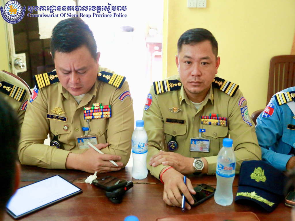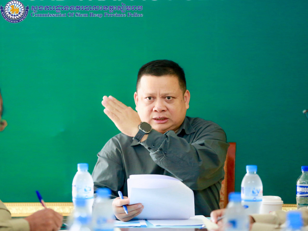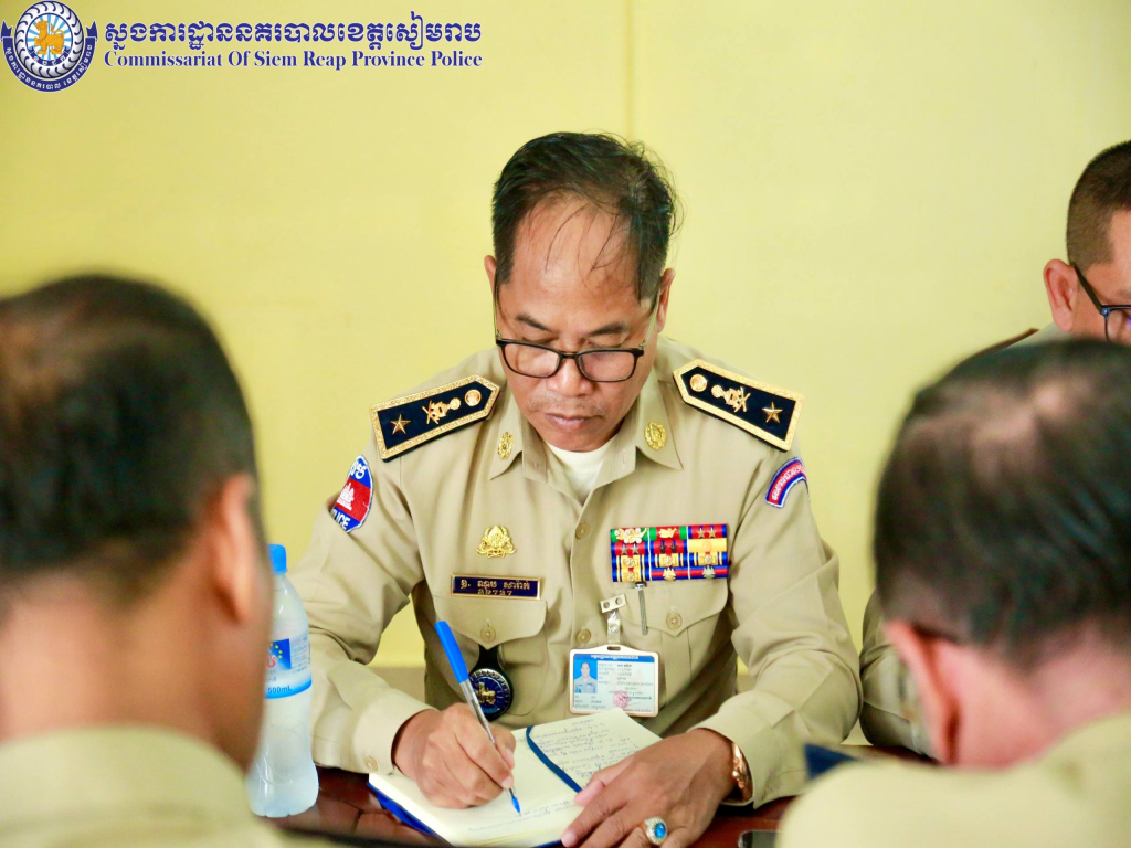 សៀមរាប ៖ នៅព្រឹកថ្ងៃអង្គារ ១៤កើត ខែកត្តិក ឆ្នាំម្សាញ់ សប្តស័ក ព.ស. ២៥៦៩ ត្រូវនឹងថ្ងៃទី៤ ខែវិច្ឆិកា ឆ្នាំ២០២៥ វេលាម៉ោង០៩:០០នាទី នៅស្នាក់ការនគរបាលចរាចរណ៍ផ្លូវគោក ដោយអនុវត្តតាមការចង្អុលដឹកនាំដ៏ខ្ពង់ខ្ពស់ពី ឯកឧត្តម នាយឧត្តមសេនីយ៍ ស ថេត អគ្គស្នងការនគរបាលជាតិ លោកឧត្ដមសេនីយ៍ទោ ហួត សុធី ស្នងការ នៃស្នងការដ្ឋាននគរបាលខេត្ដសៀមរាប អញ្ជើញដឹកនាំកិច្ចប្រជុំត្រួតពិនិត្យផែនការការពារ ធានាសន្តិសុខ សុវត្ថិភាព និងសណ្តាប់ធ្នាប់កម្មវិធីផ្សារទឹក និងជិះទូកកំសាន្ត ក្នុងឱកាសព្រះរាជពិធីបុណ្យអុំទូក បណ្តែតប្រទីប និងសំពះព្រះខែ អកអំបុក ៕