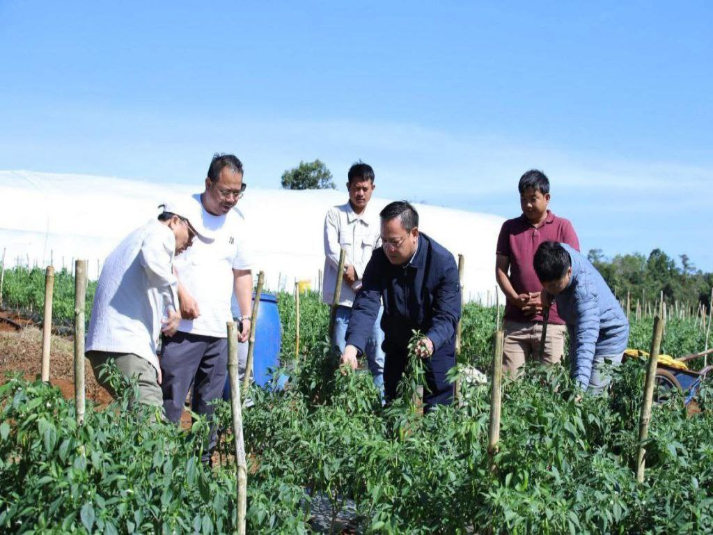 មណ្ឌលគិរី ៖ នាព្រឹកថ្ងៃទី២៥ ខែវិច្ឆិកា ឆ្នាំ២០២៥ ឯកឧត្តម ថង សាវុន អភិបាលខេត្តមណ្ឌលគិរី អមដោយលោក អភិបាលរងខេត្ត ថ្នាក់ដឹកនាំមន្ទីរកសិកម្ម រុក្ខាប្រមាញ់ និងនេសាទ ខេត្តមណ្ឌលគិរី បានអញ្ជើញចុះពិនិត្យមើលកសិដ្ឋានដាំដុះបន្លែរបស់កសិករ Wang lei lei (ជនជាតិចិន) និងជួបសំណេះសំណាល សួរសុខទុក្ខ ជំរុញលើកទឹកចិត្តកសិករដាំបន្លែ នៅខេត្តមណ្ឌលគិរី។