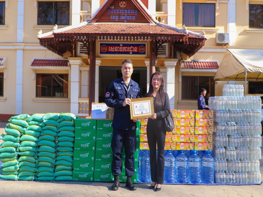 នាថ្ងៃទី១៩ ខែធ្នូ ឆ្នាំ២០២៥ នៅបញ្ជាការដ្ឋានកងរាជអាវុធហត្ថខេត្តសៀមរាប ក្រុមហ៊ុនបញ្ចាំ ឡូយ៉ាល់ ឃែស ក្រុមហ៊ុន អេសធី ព្រីមៀ រ៉េសុីដេន ឯ ក ហេង វុទ្ធី ត្រេឌីង កូ អិល ធីឌី លោក ឡាយ សុផាន់ណា និងភរិយា ដែលមានចិត្តសប្បុរសជួយឧបត្ថម្ភ ដូចស្បៀងអាហារ សម្ភារៈប្រើប្រាស់ និងថវិកា ចូលរួមជាមួយកងរាជអាវុធហត្ថខេត្តសៀមរាប ជូនដល់កងទ័ពជួរមុខ និងប្រជាជនភៀសសឹកដែលជម្លៀសចេញពីតំបន់សមរភូមិមុខមកទីតាំងសុវត្ថិភាព។