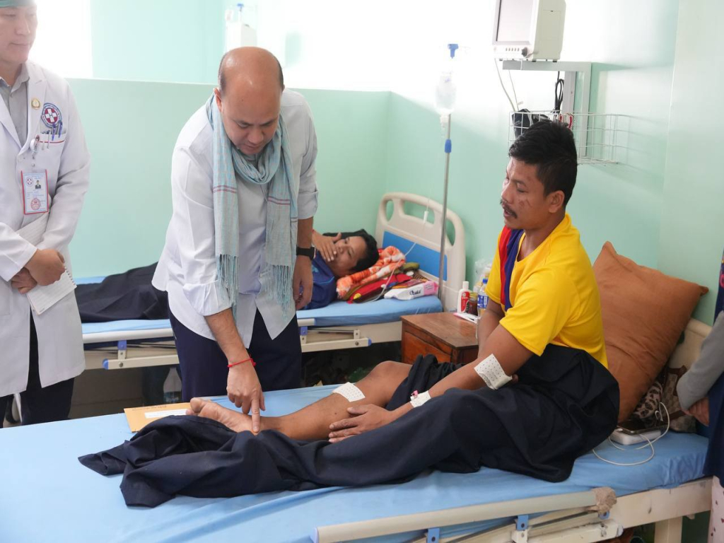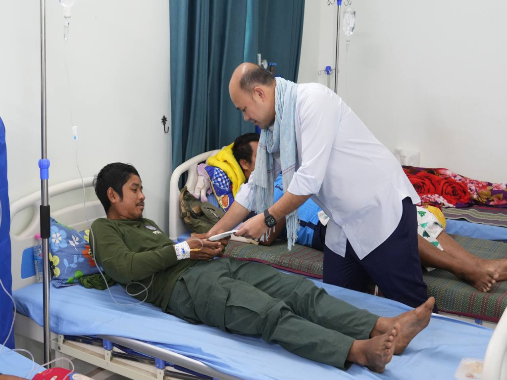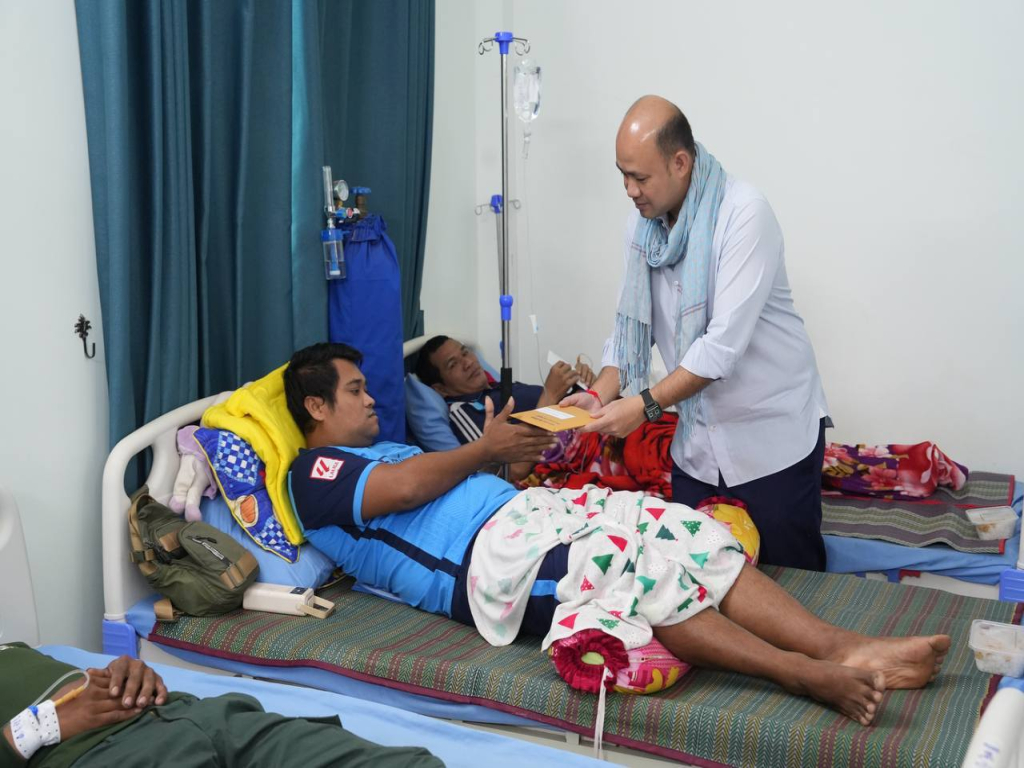 ឯកឧត្តម ហ៊ុន ម៉ានី ឧបនាយករដ្ឋមន្រ្តី រដ្ឋមន្រ្តីក្រសួងមុខងារសាធារណៈ និងជាប្រធានសហភាពសហព័ន្ធយុវជនកម្ពុជា បានដឹកនាំគណៈប្រតិភូនាំយកអំណោយសម្តេចមហាបវរធិបតី ហ៊ុន ម៉ាណែត នាយករដ្ឋមន្រ្តី ចុះសួរសុខទុក្ខវីរកងទ័ពជួរមុខដែលបានរងរបួសក្នុងការបំពេញបេសកកម្មការពារបូរណភាពទឹកដី និងកំពុងសម្រាកព្យាបាលនៅមណ្ឌលសុខភាពគូលែន និងមន្ទីរពេទ្យបង្អែក១៦មករា ខេត្តព្រះវិហារ។