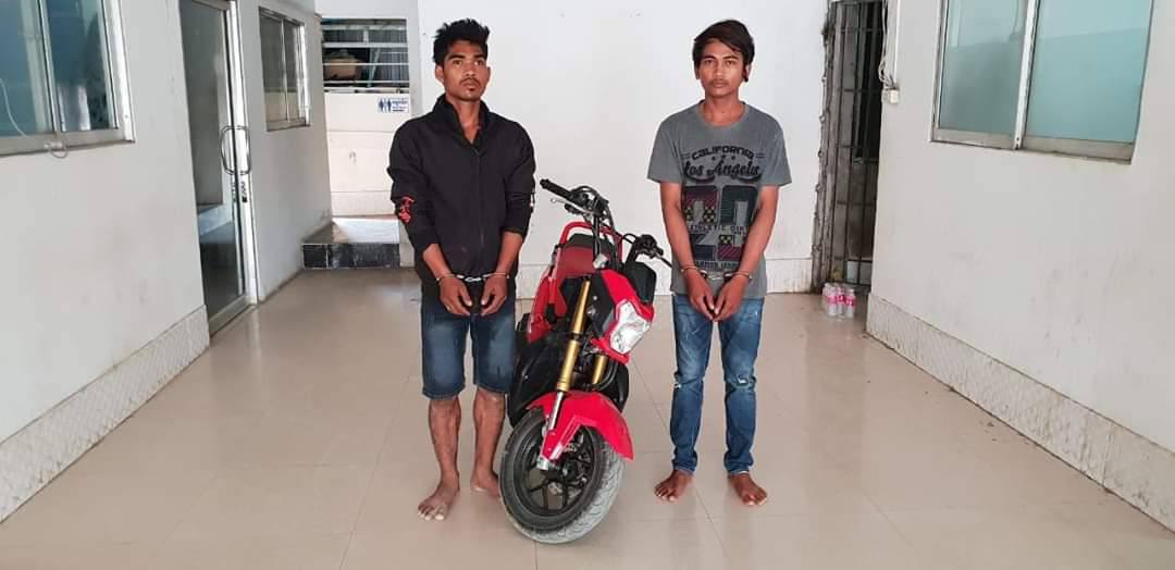 ក្រុងប៉ោយប៉ែត): កម្លាំងជំនាញបានទទួលពាក្យ បណ្ដឹងពីម្ចាស់ម៉ូតូឈ្មោះ ប៉ឺ ណៃគ្រី ភេទប្រុស អាយុ៣៨ឆ្នាំ ស្នាក់នៅភូមិ បាលិលេយ្យ១ សង្កាត់ប៉ោយប៉ែត ក្រុង ប៉ោយប៉ែត ខេត្តបន្ទាយមានជ័យ: មុខរបរ លក់ដូរ និងជួលម៉ូតូ បានដាក់ពាក្យបណ្ដឹងនិងរាយការណ៍ថា; នៅថ្ងៃទី 22 ខែមករាឆ្នាំ 2020 វេលាម៉ោង 3 ទៀបភ្លឺ បន្ទាប់ពីក្រោកពីដេកដើរចេញ មកមុខផ្ទះ បានបាត់ម៉ូតូម៉ាក ហុងដាហ្សូមម័រអ៊ិច ពណ៍ក្រហម ខ្មៅ ពាក់ស្លាកលេខ បន្ទាយមានជ័យ. 1T-7649 ដោយមើលតាមជីភីអែស ដែលខ្លួនបានដាក់ភ្ជាប់ហ្នឹងម៉ូតូ ទើបដឹងថាមានចោរ កាច់កម៉ូតូ ហើយលួចយកទៅបាត់ បន្ទាប់ពីបានទទួលបណ្ដឹងរួច លោកវរសេនីយ៍ឯក ធិន ស៊ិនដេត អធិការនគរបាលក្រុងប៉ោយប៉ែត- បានបញ្ជា កម្លាំងជំនាញចុះស្រាវជ្រាវ រកម៉ូតូ រហូតដល់ម៉ោង៥ទាបភ្លឺ ចូលថ្ងៃទី ២៣ ខែមករា ឆ្នាំ២០២០ កម្លាំងជំនាញ បានធ្វើការឃាត់ខ្លួន ជនសង្ស័យចំនួន២នាក់ព្រមទាំង ម៉ូតូរបស់ជនរងគ្រោះយកមកអធិការដ្ឋានដើម្បីសួរ នាំនិងរក្សាទុកនៅអធិការរដ្ឋាននគរបាលក្រុងប៉ោយប៉ែត =