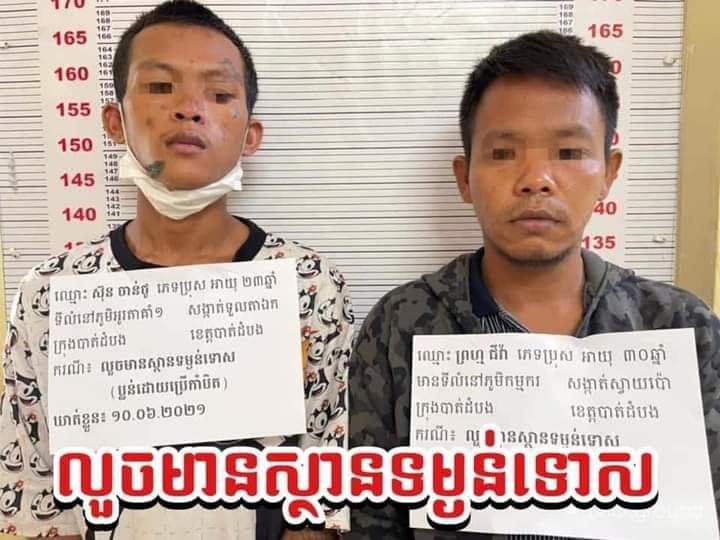 ខេត្តបាត់ដំបង៖ កាលពីថ្ងៃទី១០ ខែមិថុនា ឆ្នាំ២០២១ សមត្ថកិច្ចឃាត់ខ្លួនជនសង្ស័យចំនួន ២នាក់ នៅចំណុច ភូមិកម្មករ សង្កាត់ស្វាយប៉ោ ក្រុងបាត់ដំបង ដើម្បីធ្វើការសាកសួរស្រាវជ្រាវ បន្ទាប់ពីសមត្ថកិច្ចទទួល ពាក្យបណ្តឹងរបស់ជនរងគ្រោះឈ្មោះ គុណ សេរីសោភា ភេទស្រី អាយុ ៣១ឆ្នាំ មានទីលំនៅ ភូមិភ្ជាវ ឃុំត្រែង ស្រុករតន:មណ្ឌល ខេត្តបាត់ដំបង ថាមានករណីអំពើលួច មានស្ថានទម្ងន់ទោស (ប្លន់ប្រើប្រាស់ដោយកាំបិត) កាលពីថ្ងៃទី៩ ខែមិថុនា ឆ្នាំ២០២១ វេលាម៉ោង ១១និង៥០នាទី នៅក្នុងក្រុងបាត់ដំបងដែលក្នុងនោះ ជនសង័្សយយកបានទូរស័ព្ទ ដៃចំ នួន ០១គ្រឿងម៉ាក OPPO Rino5 ដែលជារបស់ជនរងគ្រោះ។