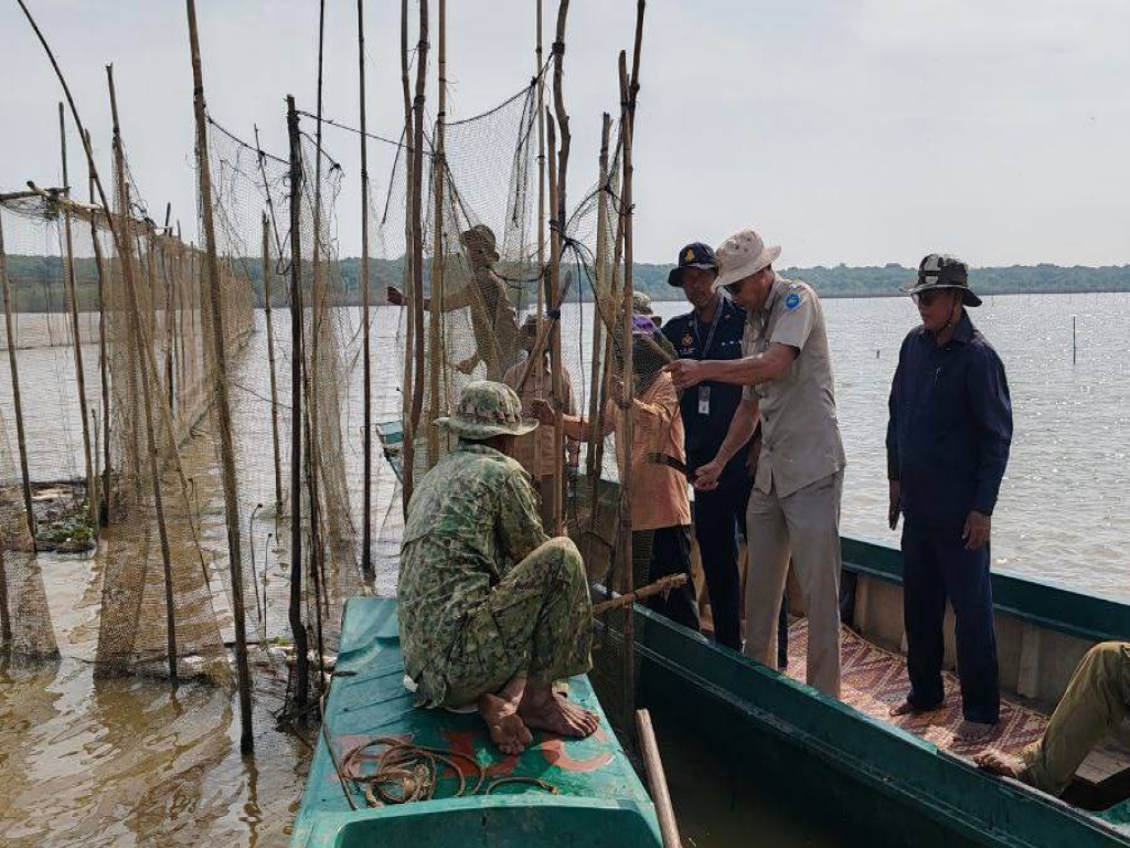 សៀមរាប ៖ ថ្ងៃទី ២១ ខែ មករា ឆ្នាំ២០២៥ គណៈបញ្ជាការឯកភាពរដ្ឋបាលស្រុកសូទ្រនិគម ដឹកនាំដោយលោក ជុំ ចាន់ថេង អភិបាលរង នៃគណៈអភិបាលស្រុក និងដោយមានការចូលរួមពី សង្កាត់រដ្ឋបាលជលផលសូទ្រនិគម លោកនាយករងរដ្ឋបាលស្រុក លោកអនុប្រធានការិយាល័យកសិកម្ម ធនធានធម្មជាតិ និងបរិស្ថានស្រុក មូលដ្ឋានកងរាជអាវុធហត្ថស្រុក អធិការដ្ឋាននគរបាលស្រុក ឧទ្យានុរក្សតំបន់ប្រើប្រាស់ច្រើនយ៉ាងស្នាក់ការកំពង់ឃ្លាំង និងសហគមន៍នេសាទកំពង់ឃ្លាំង