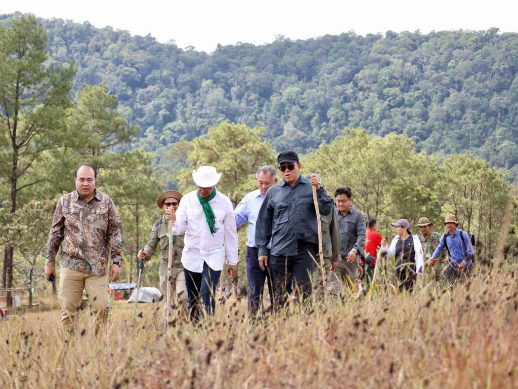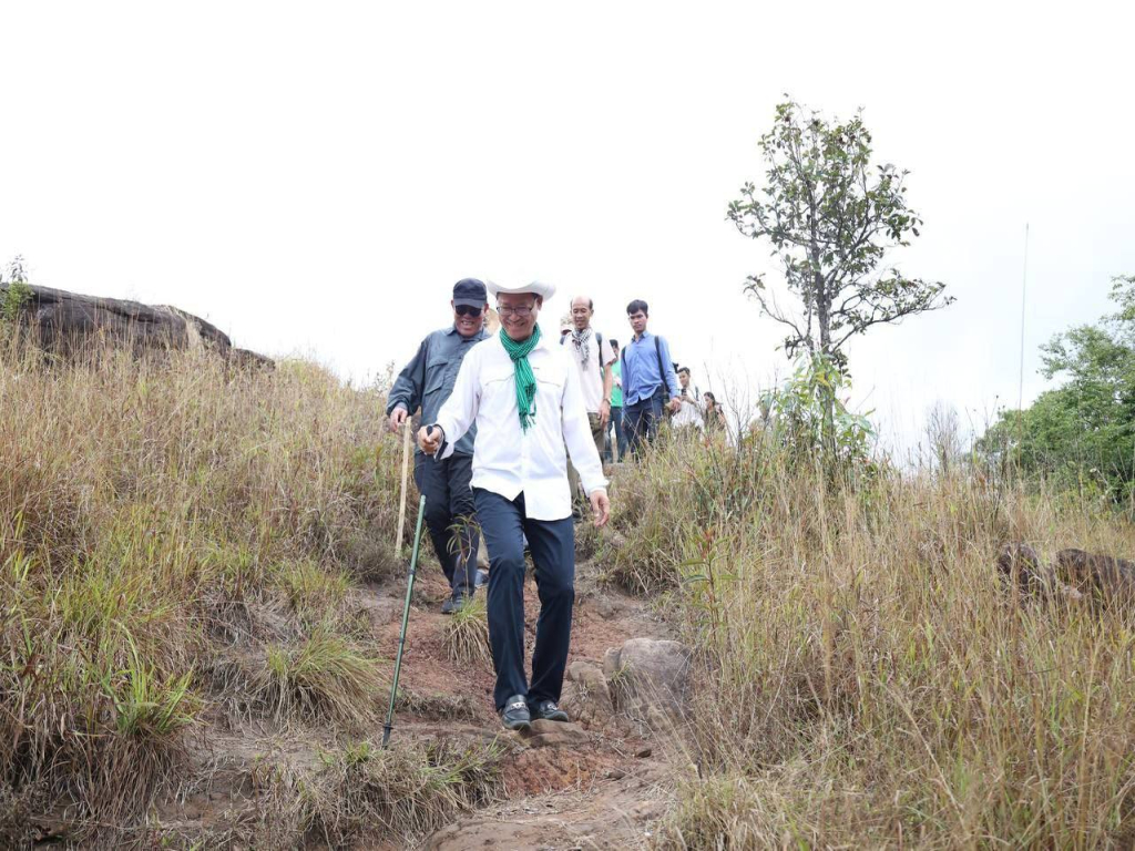 ឯកឧត្តមរដ្ឋមន្រ្តីបានធ្វើដំណើរ ដោយថ្មើរជើងចំងាយឡើងភ្នំ ជាង ៣គីឡូ និងបានឆ្លងកាត់តំបន់ទេសភាពធម្មជាតិ យ៉ាងល្អប្រណីត ដូចជាវាលស្រល់បៃតងស្រស់ ខ្យល់អាកាសបរិសុទ្ធ ឆ្លងកាត់ភ្នំខ្នងក្រពើ បន្តទៅភ្នំខ្នងស្រូវ និងបន្តមកតំបន់ភ្នំខ្នងផ្សារ ដែលរដូវនេះ បានរំលេចចេញឱ្យឃើញទេសភាពដូចក្រាលព្រំពណ៌មាសលើភ្នំ គួរជាទីមនោរម្យ។