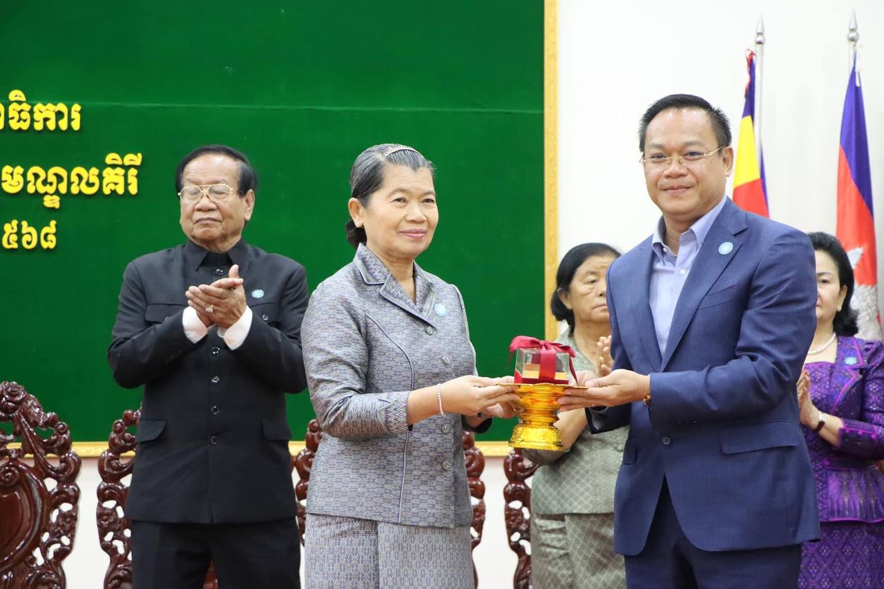 ខេត្តមណ្ឌលគិរី៖ សម្តេចកិត្តិសង្គហបណ្ឌិត ម៉ែន សំអន ប្រធានក្រុមប្រឹក្សាជាតិរណសិរ្សសាមគ្គី អភិវឌ្ឍន៍មាតុភូមិកម្ពុជា បានអញ្ជើញជាអធិបតីភាពដ៏ខ្ពង់ខ្ពស់ នៃពិធីប្រកាសទទួលស្គាល់គណៈកម្មាធិការរណសិរ្សសាមគ្គី អភិវឌ្ឍន៍មាតុភូមិកម្ពុជា ខេត្តមណ្ឌលគិរី នៅសាលាខេត្ត នាព្រឹកថ្ងៃទី១៨ ខែកញ្ញា ឆ្នាំ២០២៤។