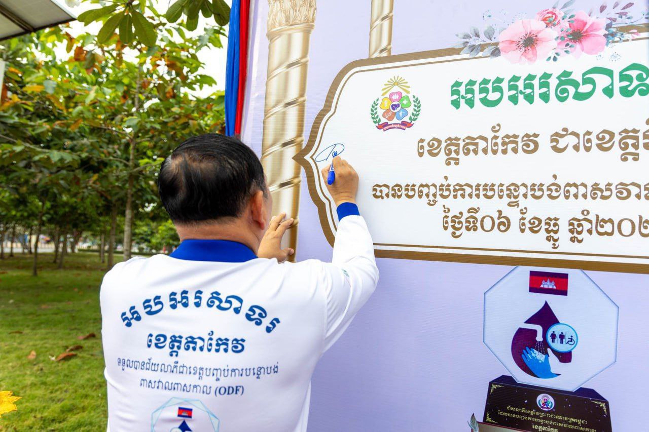 ខេត្តតាកែវ៖ នាព្រឹកថ្ងៃព្រហស្បតិ៍ ៥កើត ខែមិគសិរ ឆ្នាំរោង ឆស័ក ព.ស.២៥៦៨ ត្រូវនឹងថ្ងៃទី៥ ខែធ្នូ ឆ្នាំ២០២៤ នៅបរិវេណសួនច្បារមាត់បឹងខេត្តតាកែវ ឯកឧត្តម ឆាយ ឫទ្ធិសែន រដ្ឋមន្ត្រីក្រសួងអភិវឌ្ឍន៍ជនបទ បានអញ្ជើញជាអធិបតីភាពដ៏ខ្ពង់ខ្ពស់ក្នុងពីធីប្រកាសទទួលស្គាល់ខេត្តតាកែវ ទទួលបានជ័យលាភីបញ្ចប់ការបន្ទោបង់ពាសវាលពាសកាល (ODF) ដែលមានសមាសភាពអញ្ជើញចូលរួម សរុបប្រមាណ ១ ៤១៦នាក់។