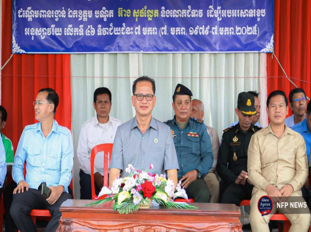 ត្បូងឃ្មុំ៖ ឯកឧត្តម ង៉ូវ បូរីណា រដ្ឋលេខាធិការក្រសួងបរិស្ថាន នៅថ្ងៃទី២២ ខែធ្នូ ឆ្នាំ២០២៤ តំណាងដ៏ខ្ពង់ ខ្ពស់ឯកឧត្តមបណ្ឌិត អ៊ាង សុផល្លែត រដ្ឋមន្ត្រី ក្រសួងបរិស្ថាន និងជាប្រធានក្រុមការងាររាជ រដ្ឋាភិបាលចុះមូលដ្ឋានខេត្តត្បូងឃ្មុំ បានអញ្ជើញ ជាអធិបតីក្នុងពិធីប្រកួកីឡាបាល់ទាត់មហាជន ស្រុកពញាក្រែក វគ្គផ្តាច់ព្រ័ត្រ ដណ្តើមពានរង្វាន់ ឯកឧត្តមបណ្ឌិត អ៊ាង សុផល្លែត រដ្ឋមន្ត្រីក្រសួង បរិស្ថាន និង លោកជំទាវ ក្រោមមូលបទ «កីឡា ដើម្បីសន្តិភាព និងបរិស្ថាននៅកម្ពុជា» អបអរ សាទរខួបអនុស្សាវរីយ៍លើកទី ៤៦ នៃទិវាជ័យ