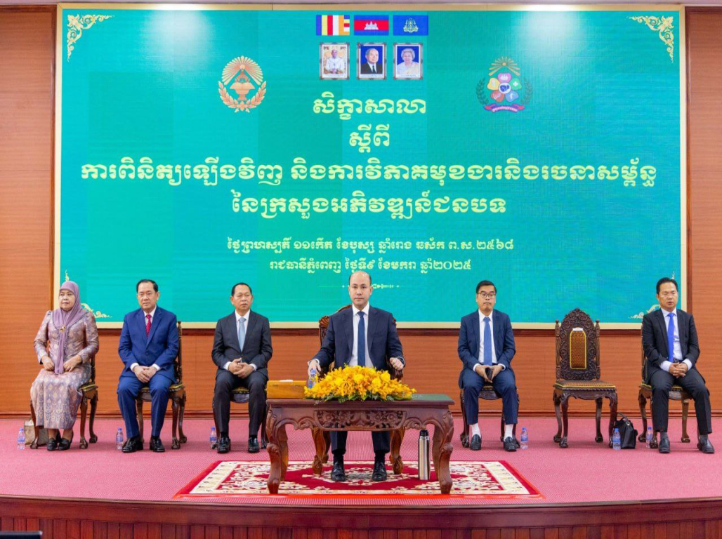 រាជធានីភ្នំពេញ៖ នារសៀលថ្ងៃព្រហស្បតិ៍ ១១កើត ខែបុស្ស ឆ្នាំរោង ឆស័ក ព.ស.២៥៦៨ ត្រូវនឹងថ្ងៃទី៩ ខែមករា ឆ្នាំ២០២៥ នៅទីស្ដីការក្រសួងអភិវឌ្ឍន៍ជនបទ មានការរៀបចំសិក្ខាសាលាស្តីពី “ការត្រួតពិនិត្យឡើងវិញលើការវិភាគមុខងារ និងរចនាសម្ព័ន្ធនៃក្រសួងអភិវឌ្ឍន៍ជនបទ” ក្រោមអធិបតីភាពដ៏ខ្ពង់ខ្ពស់របស់ ឯកឧត្តម ហ៊ុន ម៉ានី ឧបនាយករដ្ឋមន្រ្តី រដ្ឋមន្រ្តីក្រសួងមុខងារសាធារណៈ និងជាអនុប្រធានប្រចាំការនៃគណៈកម្មាធិការជាតិជំរុញការអនុវត្តវិធានការគន្លឹះក្នុងការកែទម្រង់រដ្ឋបាលសាធារណៈ (គ.វ.រ) របស់រាជរដ្ឋាភិបាល នីតិកាលទី ៧ នៃរដ្ឋសភា។ សិក្ខាសាលានេះ រៀបចំឡើងដោយមានកិច្ចសហការរវាងក្រសួងអភិវឌ្ឍន៍ជនបទ និង ក្រសួងមុខងារសាធារណៈ ដោយមានវត្តមានដោយផ្ទាល់ពីសំណាក់ ឯកឧត្តមរដ្ឋលេខាធិការប្រចាំការ ឯកឧត្តម លោកជំទាវ រដ្ឋលេខាធិការ អនុរដ្ឋលេខាធិការ ថ្នាក់ដឹកនាំនៃក្រសួងទាំងពីរ។